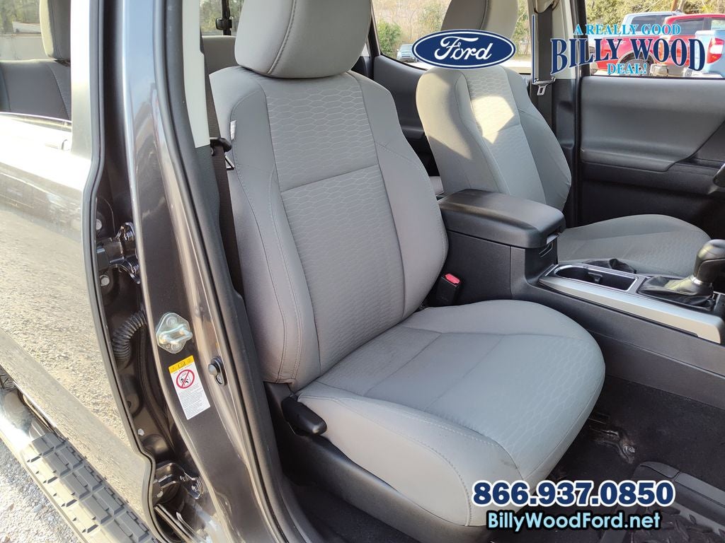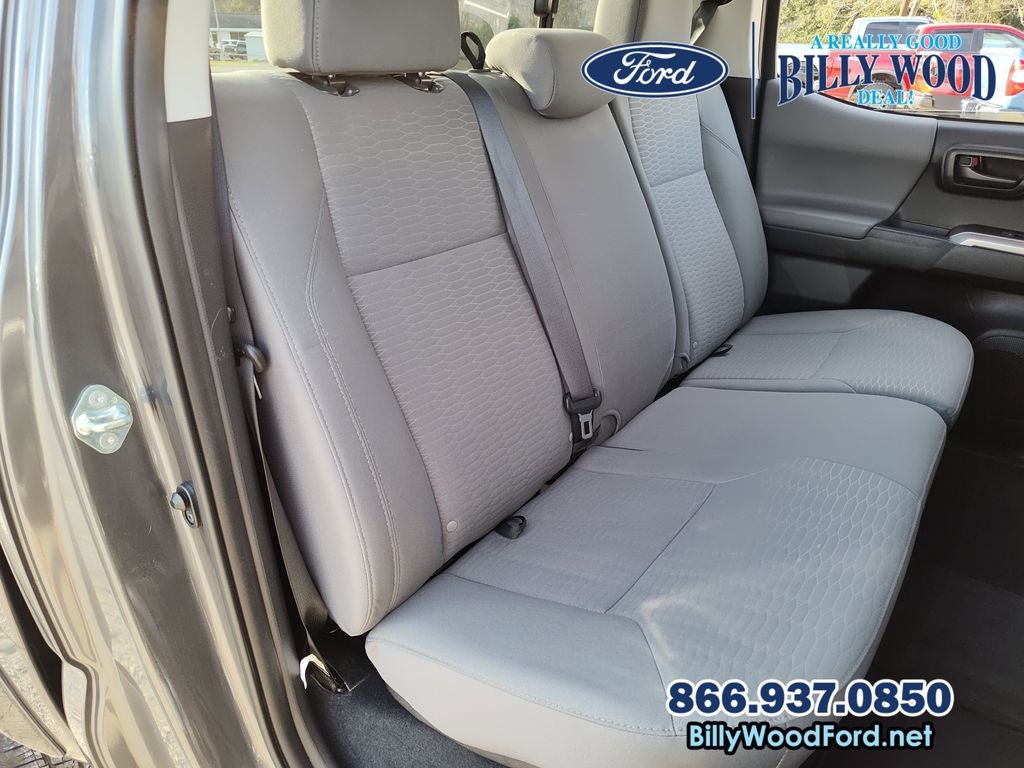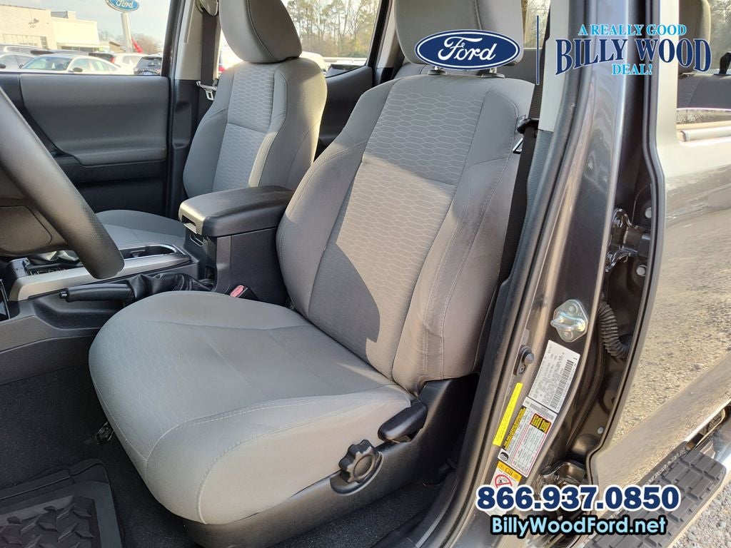 Billy Wood Ford is proud to offer this tremendous, reliable 2017 Toyota Tacoma in Gray This vehicle has passed our comprehensive 160 point inspection with flying colors and comes with the following features; 16 Silver Alloy Wheels, 6 Speakers, ABS brakes, Air Conditioning, Alloy wheels, AM/FM radio: SiriusXM, Anti-whiplash front head restraints, Auto-dimming Rear-View mirror, Axle Ratio: 3.91, Brake assist, Bumpers: body-color, CD player, Compass, Driver door bin, Dual front impact airbags, Dual front side impact airbags, Electronic Stability Control, Exterior Parking Camera Rear, Fabric Seat Trim (FC), Front anti-roll bar, Front Bucket Seats, Front Center Armrest, Front fog lights, Front reading lights, Front wheel independent suspension, Illuminated entry, Knee airbag, Low tire pressure warning, Occupant sensing airbag, Outside temperature display, Overhead airbag, Overhead console, Panic alarm, Passenger door bin, Power door mirrors, Power steering, Power windows, Radio: Entune Plus AM/FM/CD w/Connected Navigation, Radio: Entune Premium w/AM/FM/CD/Nav/App Suite, Rear step bumper, Remote keyless entry, Speed control, Speed-sensing steering, Split folding rear seat, Steering wheel mounted audio controls, Tachometer, Telescoping steering wheel, Tilt steering wheel, Traction control, Trip computer, and Variably intermittent wipers. 6-Speed Automatic V6