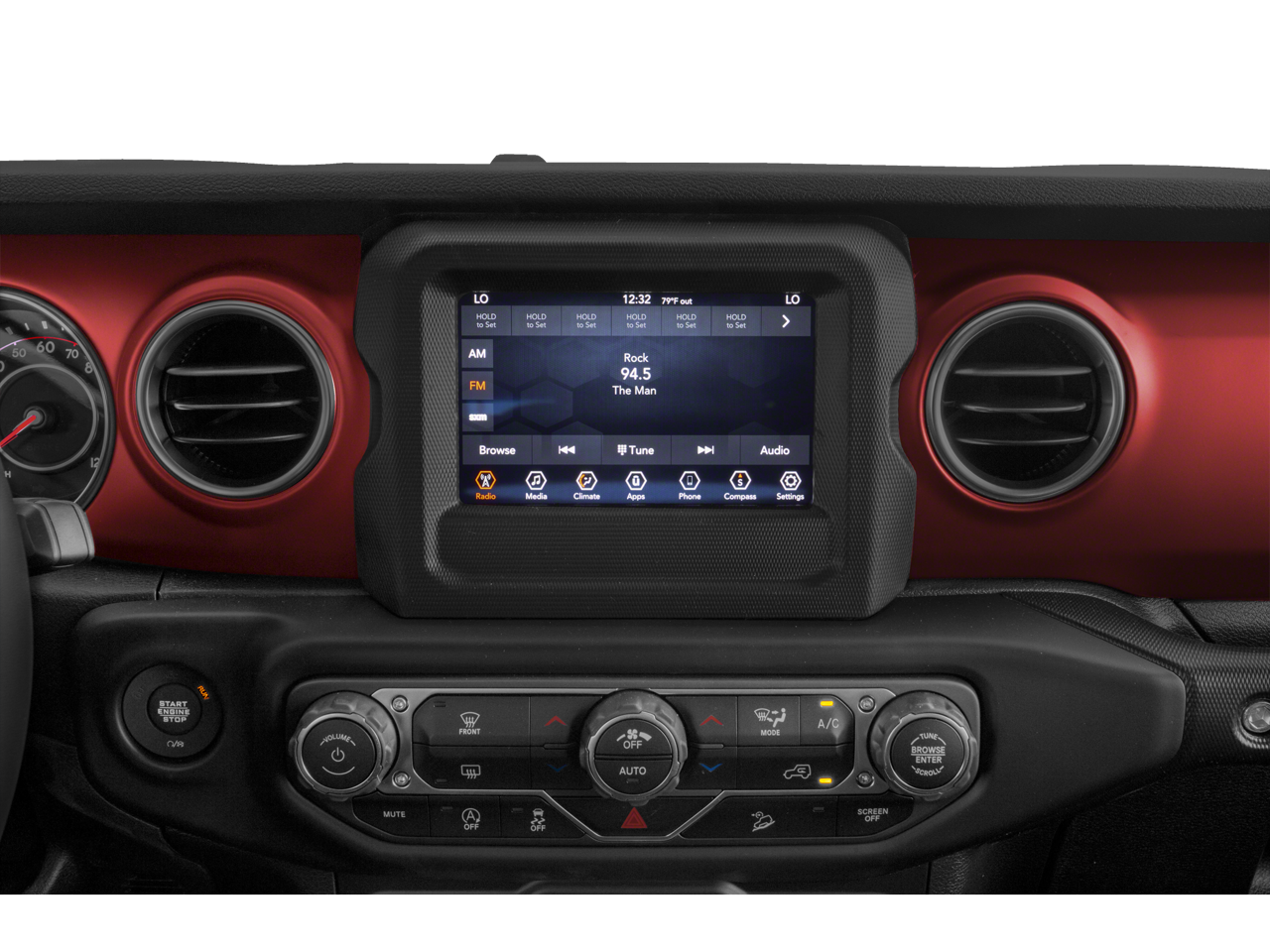 Electronic Infotainment System Group (1-Year SiriusXM Guardian Trial, 5-Year SiriusXM Traffic Service, 5-Year SiriusXM Travel Link Service, 8.4 Touchscreen Display, Alpine Premium Audio System, Auto-Dimming Rear-View Mirror, GPS Navigation, HD Radio, Radio: Uconnect 4C Nav w/8.4 Display, Roadside Assistance & 9-1-1 Call, SiriusXM Traffic Plus, and SiriusXM Travel Link), LED Lighting Group (Daytime Running Lamps LED Accents, Front LED Fog Lamps, LED Reflector Headlamps, and LED Taillamps), Quick Order Package 24R, Safety Group (Blind Spot & Cross Path Detection and ParkSense Rear Park Assist System), Steel Bumper Group (Steel Front Bumper and Steel Rear Bumper), Trailer Tow & HD Electrical Group (240 Amp Alternator, 7 & 4 Pin Wiring Harness, 700 Amp Maintenance Free Battery, Auxiliary Switches, and Class II Receiver Hitch), 21.5 Gallon Fuel Tank (DISC), 4-Wheel Disc Brakes, 4.10 Rear Axle Ratio, 8 Speakers, ABS brakes, Air Conditioning, Alloy wheels, AM/FM radio: SiriusXM, Apple CarPlay/Android Auto, Automatic temperature control, Body Color 3-Piece Hard Top, Body Color Fender Flares, Brake assist, Compass, Delay-off headlights, Driver door bin, Driver vanity mirror, Dual front impact airbags, Dual front side impact airbags, Electronic Stability Control, Freedom Panel Storage Bag, Front anti-roll bar, Front Bucket Seats, Front Center Armrest w/Storage, Front dual zone A/C, Front fog lights, Front reading lights, Fully automatic headlights, Garage door transmitter, Heated door mirrors, Illuminated entry, Integrated roll-over protection, Leather steering wheel, Low tire pressure warning, MOPAR All-Weather Floor Mats, MOPAR Hardtop Headliner, Non-Lock Fuel Cap w/o Discriminator, Occupant sensing airbag, Outside temperature display, Panic alarm, ParkView Rear Back-Up Camera, Passenger door bin, Passenger vanity mirror, Performance Suspension, Power door mirrors, Power steering, Power windows, Premium Cloth Low-Back Bucket Seats, Radio data system, Radio: Uconnect 4 w/7 Display, Rear anti-roll bar, Rear reading lights, Rear Window Defroster, Rear Window Wiper/Washer, Remote keyless entry, Remote Start System, Security system, Speed control, Split folding rear seat, Steering wheel mounted audio controls, Tachometer, Telescoping steering wheel, Tilt steering wheel, Traction control, Trip computer, Variably intermittent wipers, Voltmeter, and Wheels: 17 x 7.5 Polished w/Black Pockets.