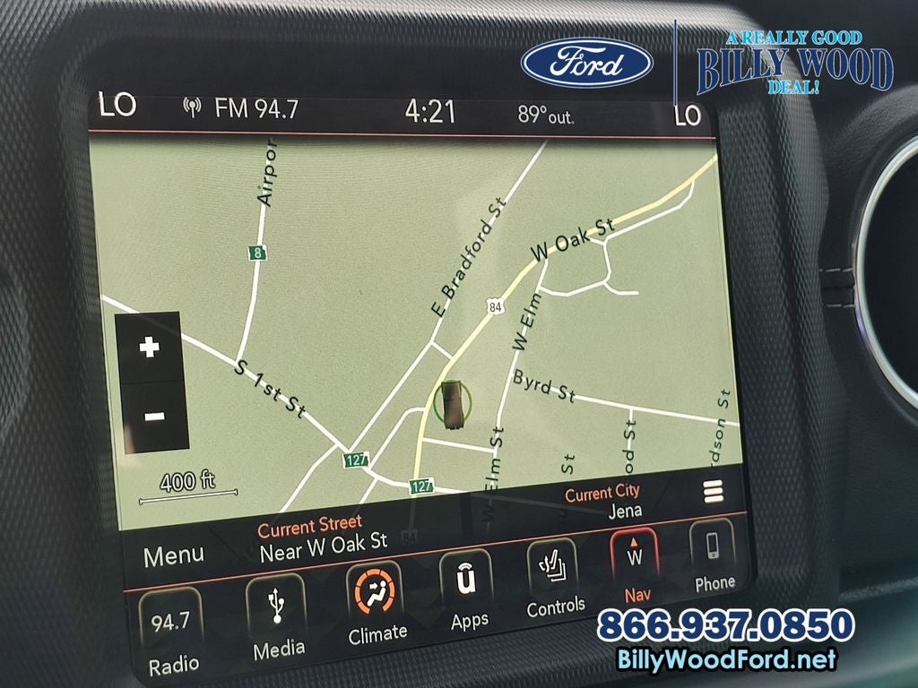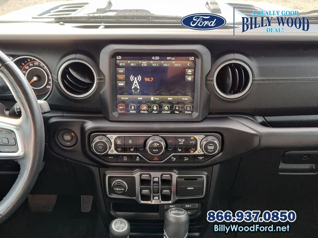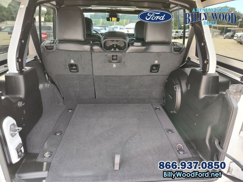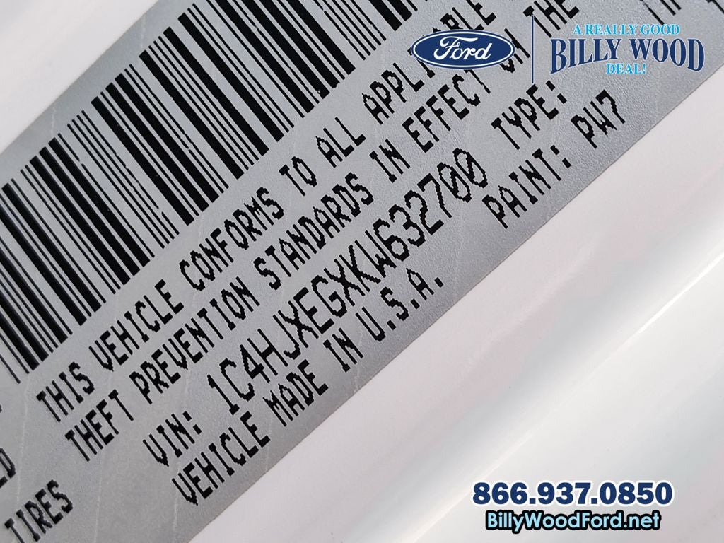 Billy Wood Ford is proud to offer this good-looking and fun 2019 Jeep Wrangler in Bright White Clearcoat This vehicle has passed our comprehensive 160 point inspection with flying colors and comes with the following features; 8.4 Radio & Premium Audio Group (1-Year SiriusXM Guardian Trial, 4G LTE Wi-Fi Hot Spot, 5-Year SiriusXM Traffic Service, 5-Year SiriusXM Travel Link Service, 8.4 Touchscreen Display, Auto-Dimming Rear-View Mirror, Emergency/Assistance Call, For Details, Visit DriveUconnect.ca, GPS Navigation, HD Radio, Radio: Uconnect 4C Nav w/8.4 Display, SiriusXM Traffic Plus, and SiriusXM Travel Link), Cold Weather Group (Heated Front Seats and Heated Steering Wheel), LED Lighting Group (Daytime Running Lamps LED Accents, Front LED Fog Lamps, LED Reflector Headlamps, and LED Taillamps), Quick Order Package 24M Moab (Anti-Spin Differential Rear Axle, Black Badges, Body Color 3-Piece Hard Top, Body Color Grille w/Gloss Black, Dual Vented Hood, Freedom Panel Storage Bag, McKinley Leather Seats w/Jeep Logo, Moab Edition, Moab Hood Badging, MOPAR All-Weather Floor Mats, MOPAR Hardtop Headliner, No Soft Top, Premium Wrapped I/P Bezels, Rear Window Defroster, Rear Window Wiper/Washer, Remote Proximity Keyless Entry, Steel Front Bumper, and Wheels: 17 x 7.5 Moab Black Aluminum), Trailer Tow & HD Electrical Group (240 Amp Alternator, 7 & 4 Pin Wiring Harness, 700 Amp Maintenance Free Battery, Auxiliary Switches, and Class II Receiver Hitch), Advanced Safety Group (Advanced Brake Assist and Full Speed Forward Collision Warning Plus), 3.45 Rear Axle Ratio, 4-Wheel Disc Brakes, 8 Speakers, ABS brakes, Air Conditioning, Alloy wheels, AM/FM radio: SiriusXM, Apple CarPlay/Android Auto, Automatic temperature control, Brake assist, Cloth Low-Back Bucket Seats, Compass, Delay-off headlights, Driver door bin, Driver vanity mirror, Dual front impact airbags, Dual front side impact airbags, Electronic Stability Control, Front anti-roll bar, Front Bucket Seats, Front Center Armrest w/Storage, Front dual zone A/C, Front fog lights, Front reading lights, Fully automatic headlights, Garage door transmitter, Heated door mirrors, Heavy Duty Suspension w/Gas Shocks, Illuminated entry, Integrated roll-over protection, Jeep Trail Rated Kit, Leather steering wheel, Leather Trimmed Bucket Seats, Low tire pressure warning, Manufacturer's Statement of Origin (DISC), Navigation System, Non-Lock Fuel Cap w/o Discriminator, Occupant sensing airbag, Outside temperature display, Panic alarm, ParkView Rear Back-Up Camera, Passenger door bin, Passenger vanity mirror, Power door mirrors, Power steering, Power windows, Radio data system, Radio: Uconnect 4 w/7 Display, Rear anti-roll bar, Rear reading lights, Remote keyless entry, Remote Start System, Security system, Speed control, Split folding rear seat, Steering wheel mounted audio controls, Tachometer, Telescoping steering wheel, Tilt steering wheel, Traction control, Trip computer, Variably intermittent wipers, Voltmeter, and Wheels: 18 x 7.5 Polished w/Gray SpokeS. 8-Speed Automatic 3.6L V6 24V VVT