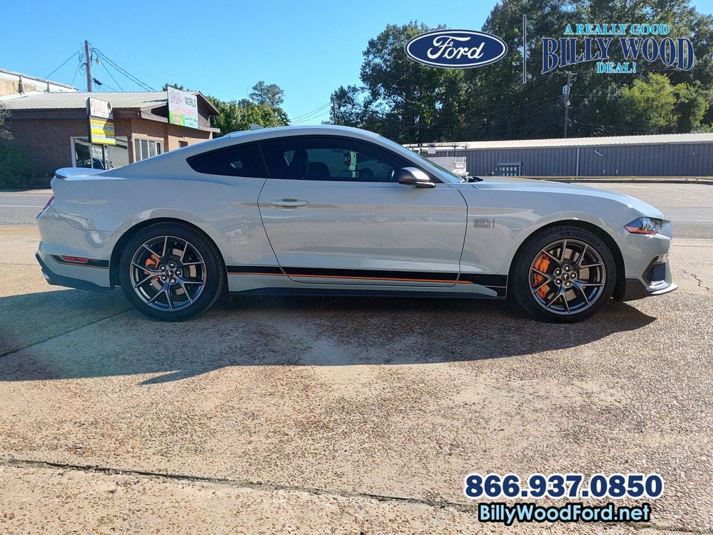 Billy Wood Ford is proud to offer this good-looking 2022 Ford Mustang in Fighter Jet Gray This vehicle has passed our comprehensive 160 point inspection with flying colors and comes with the following features; Equipment Group 700A (Aluminum Foot Pedals, Climate Controlled Heated/Cooled Front Seats, Cloth Bucket Seats w/Color Accent, Heated Steering Wheel, Memory Driver Seat, Mirrors & Ambient Lighting, and Seat Back Map Pockets), Mach 1 Appearance Package (Orange Unique Brake Calipers), Mach 1 Elite Package (HD Radio and Radio: B&O Sound System by Bang & Olufsen), Security Package (Wheel Locking Kit), 4-Wheel Disc Brakes, 9 Speakers, ABS brakes, Adaptive suspension, Air Conditioning, Alloy wheels, AM/FM radio: SiriusXM, AM/FM Stereo, Auto High-beam Headlights, Auto-dimming Rear-View mirror, Automatic temperature control, Brake assist, Bumpers: body-color, Cloth Bucket Seats, Compass, Delay-off headlights, Driver door bin, Driver vanity mirror, Dual front impact airbags, Dual front side impact airbags, Electronic Stability Control, Emergency communication system: 911 Assist, Exterior Parking Camera Rear, Four wheel independent suspension, Front anti-roll bar, Front Bucket Seats, Front Center Armrest, Front dual zone A/C, Front reading lights, Fully automatic headlights, Garage door transmitter, Heated door mirrors, Illuminated entry, Knee airbag, Low tire pressure warning, Occupant sensing airbag, Orange/Black Hood & Side Stripe, Outside temperature display, Overhead airbag, Overhead console, Panic alarm, Passenger door bin, Passenger vanity mirror, Power door mirrors, Power driver seat, Power passenger seat, Power steering, Power windows, Premium Floor Mats w/Accent Stitch, Radio data system, Rain sensing wipers, Rear anti-roll bar, Rear window defroster, RECARO Leather-Trimmed Sport Seats, Remote keyless entry, Security system, SiriusXM Radio, Speed control, Speed-sensing steering, Speed-Sensitive Wipers, Split folding rear seat, Spoiler, Steering wheel mounted audio controls, SYNC 3 Communications & Entertainment System, Tachometer, Telescoping steering wheel, Tilt steering wheel, Traction control, Trip computer, Turn signal indicator mirrors, Variably intermittent wipers, Voice-Activated Touch-Screen Navigation System, Voltmeter, Wheels: 19 x 9.5 Fr & 19 x 10 Rr Aluminum, and Wheels: 19 x 9.5 Fr & 19 x 10 Rr Aluminum (64S) 10-Speed Automatic 5.0L V8 Ti-VCT