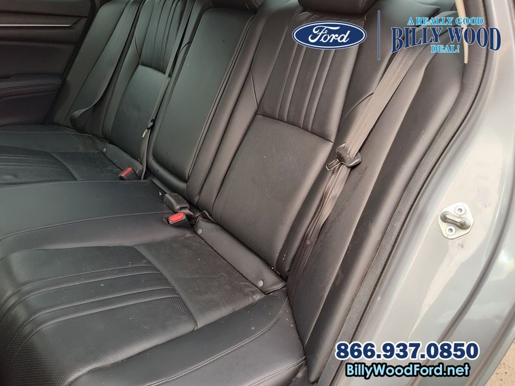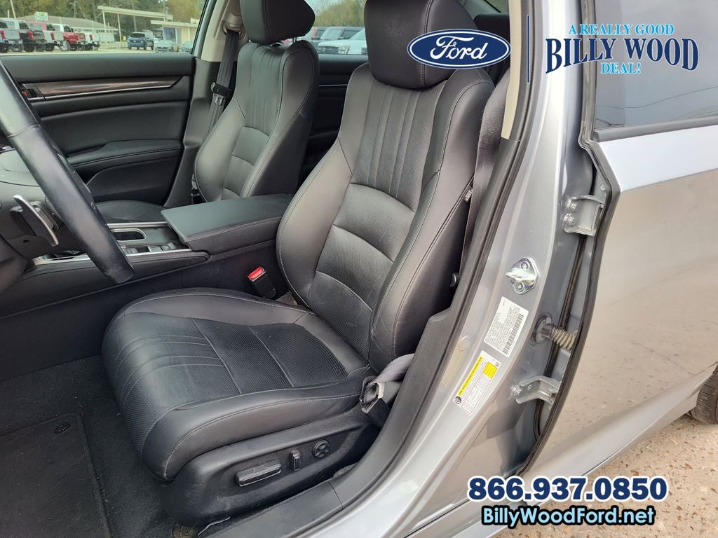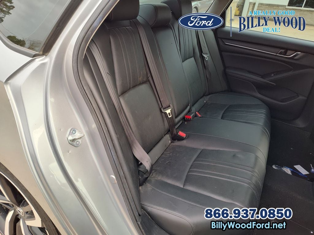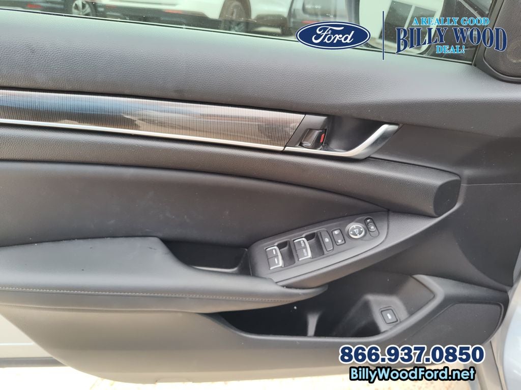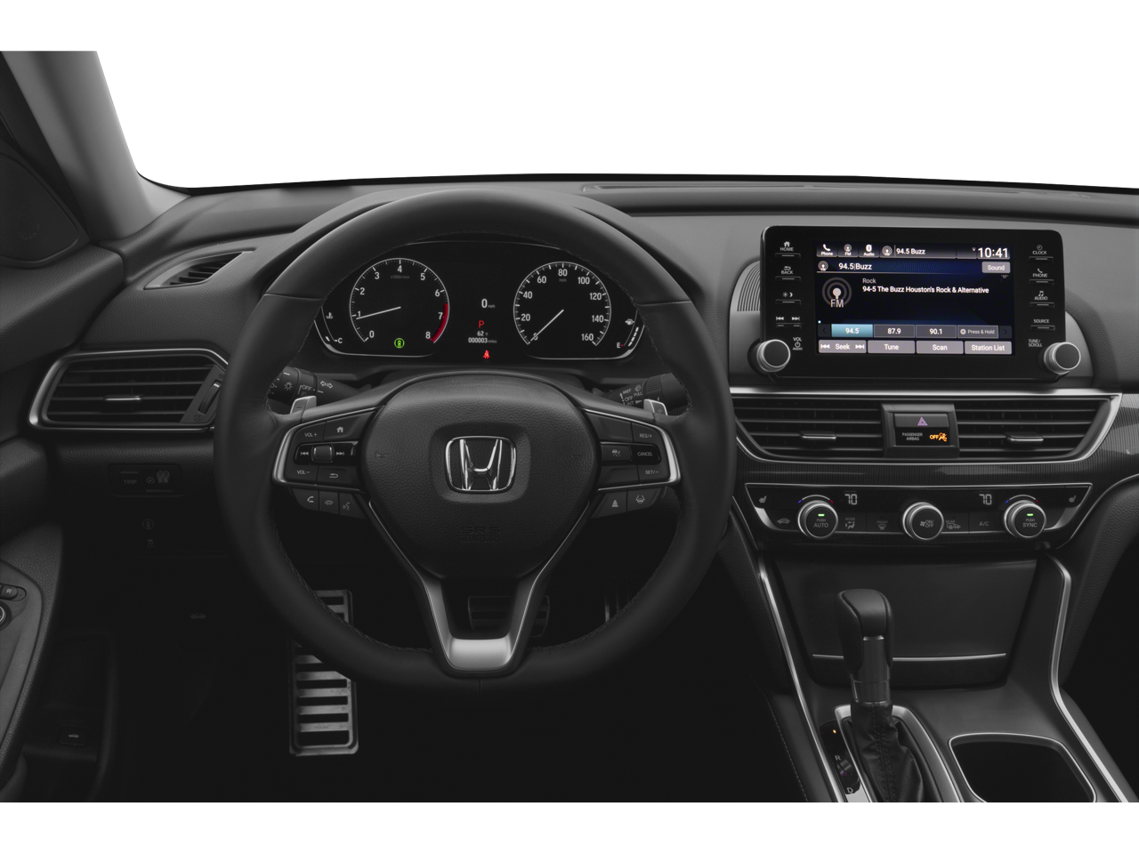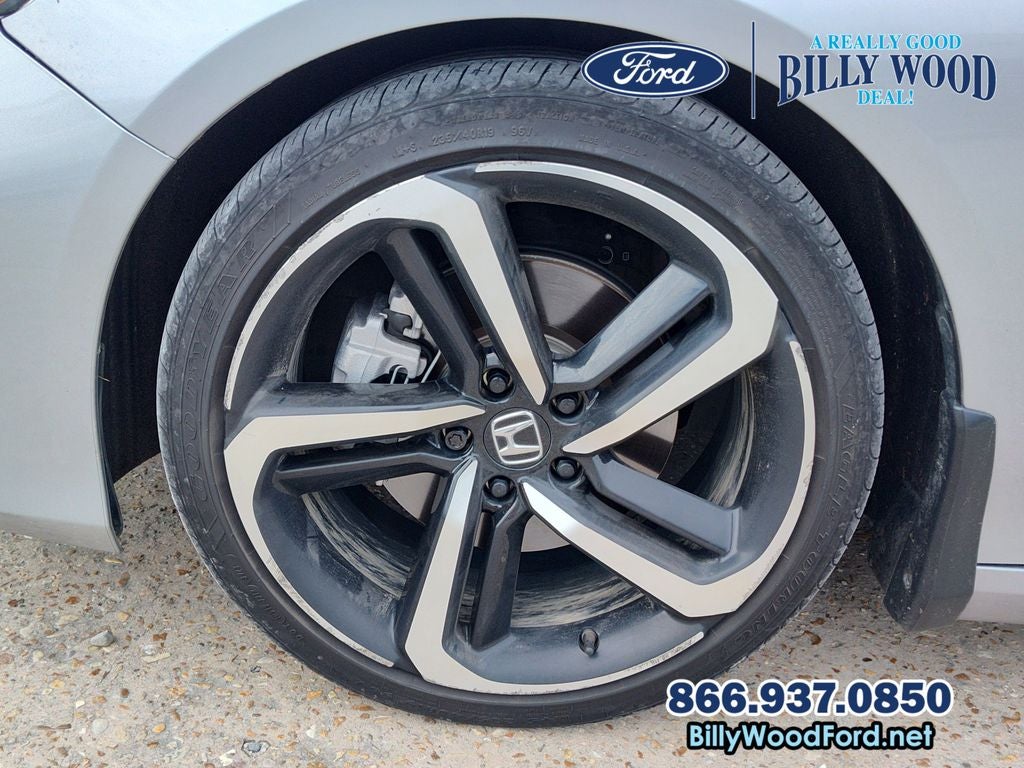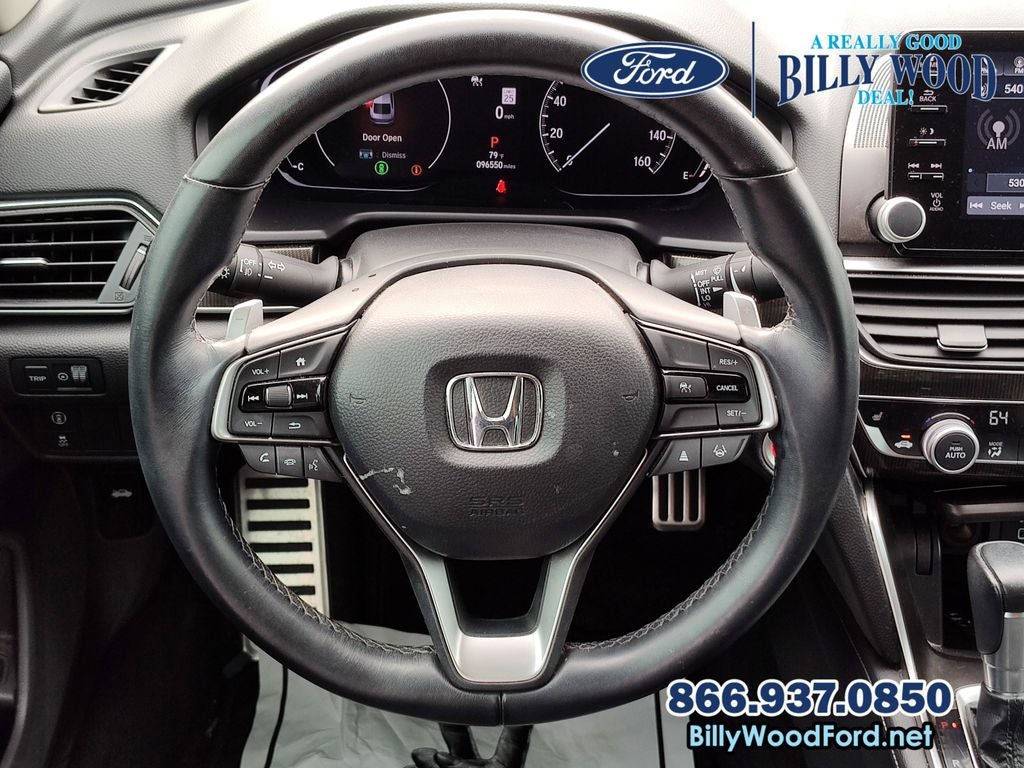 The exterior of this Accord exudes a bold and sporty presence, with 19-inch Machine-Finished Alloy wheels with Black Inserts, a sleek spoiler, and body-color bumpers that seamlessly integrate with the overall design. Step inside and you'll be greeted by a well-appointed interior, featuring a Leather-Wrapped Steering Wheel, Leather Shift Knob, and an impressive 180-Watt AM/FM Audio System.