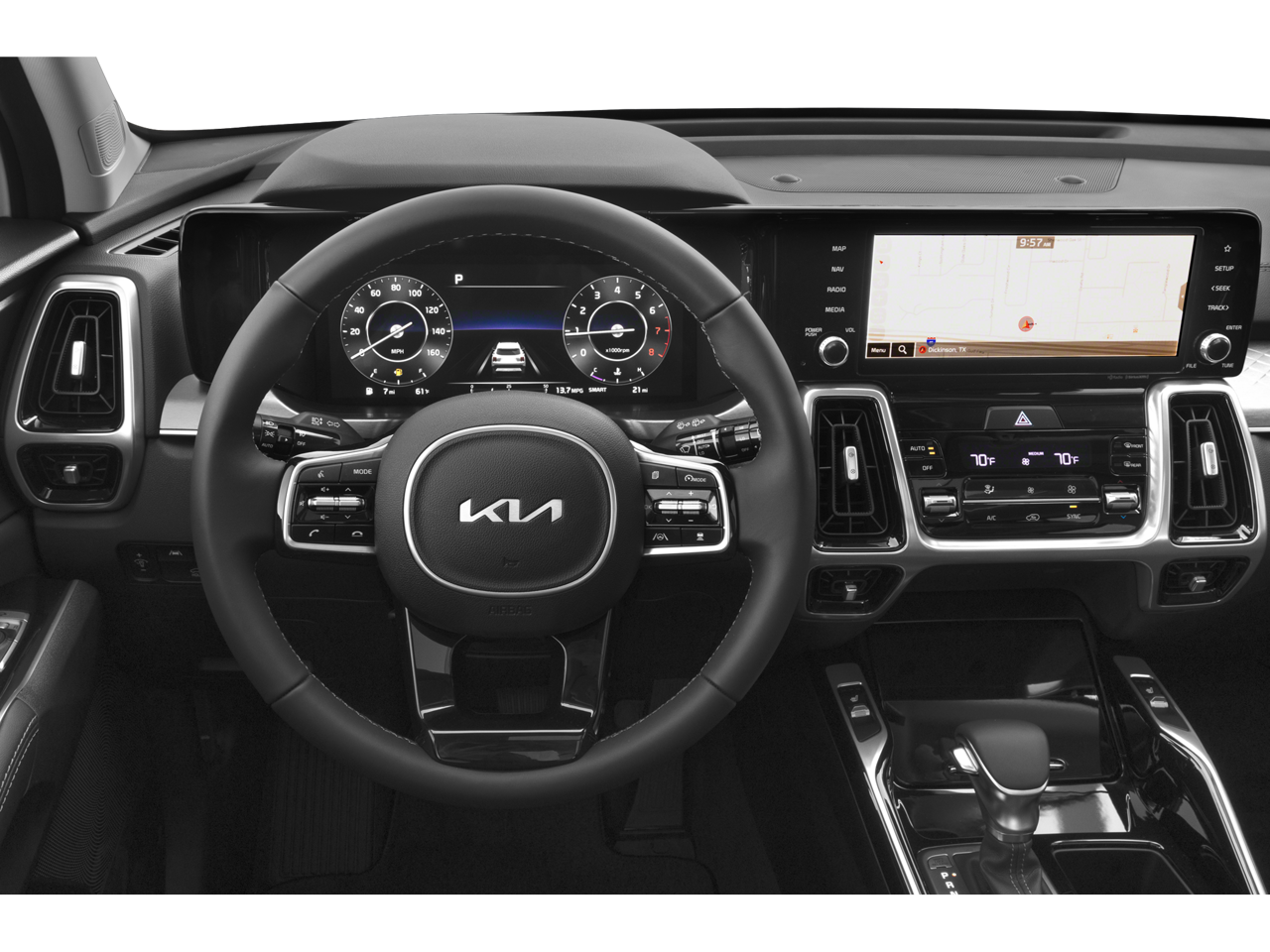 Billy Wood Ford is proud to offer this wonderful-looking 2023 Kia Sorento in Wolf Gray This vehicle has passed our comprehensive 160 point inspection with flying colors and comes with the following features; AWD, 12 Speakers, 3.316 Axle Ratio, 3rd row seats: split-bench, 4-Wheel Disc Brakes, ABS brakes, Air Conditioning, Alloy wheels, AM/FM radio: SiriusXM, Apple CarPlay & Android Auto, Auto High-beam Headlights, Auto-dimming Rear-View mirror, Automatic temperature control, Brake assist, Bumpers: body-color, Carpet Floor Mats, Delay-off headlights, Driver door bin, Driver vanity mirror, Dual front impact airbags, Dual front side impact airbags, Electronic Stability Control, Emergency communication system, Four wheel independent suspension, Front anti-roll bar, Front Bucket Seats, Front Center Armrest, Front dual zone A/C, Front fog lights, Front reading lights, Fully automatic headlights, Garage door transmitter: HomeLink, Heated & Ventilated Front Bucket Seats, Heated door mirrors, Heated front seats, Heated rear seats, Heated steering wheel, Illuminated entry, Knee airbag, Leather steering wheel, Low tire pressure warning, Memory seat, Navigation System, Occupant sensing airbag, Outside temperature display, Overhead airbag, Overhead console, Panic alarm, Passenger door bin, Passenger vanity mirror, Perforated Genuine Leather Seat Trim, Power door mirrors, Power driver seat, Power Liftgate, Power moonroof, Power passenger seat, Power steering, Power windows, Radio data system, Radio: AM/FM Bose Premium Audio System, Rain sensing wipers, Rear air conditioning, Rear anti-roll bar, Rear reading lights, Rear window defroster, Rear window wiper, Remote keyless entry, Roof rack: rails only, Security system, Smart Key w/ Push Button and Remote Start, Speed control, Speed-sensing steering, Split folding rear seat, Spoiler, Steering wheel mounted audio controls, Tachometer, Telescoping steering wheel, Tilt steering wheel, Traction control, Trip computer, Turn signal indicator mirrors, Variably intermittent wipers, Ventilated front seats, and Wheels: 8.5J x 20 Gloss Black Alloy. 8-Speed DCT 2.5L I4 DGI Turbocharged DOHC 16V LEV3-ULEV70 281hp