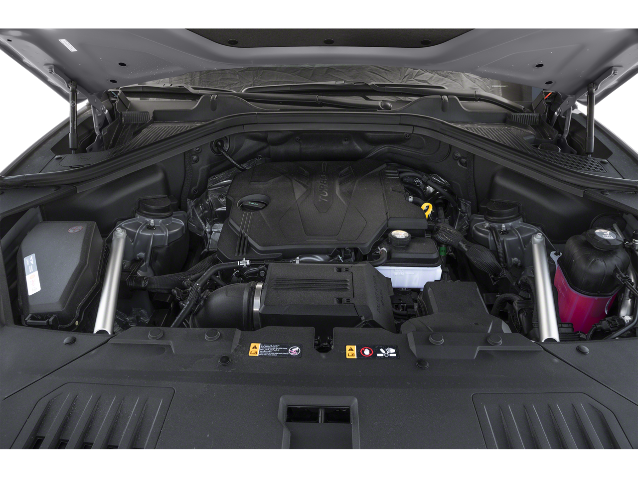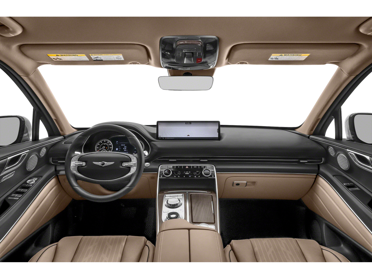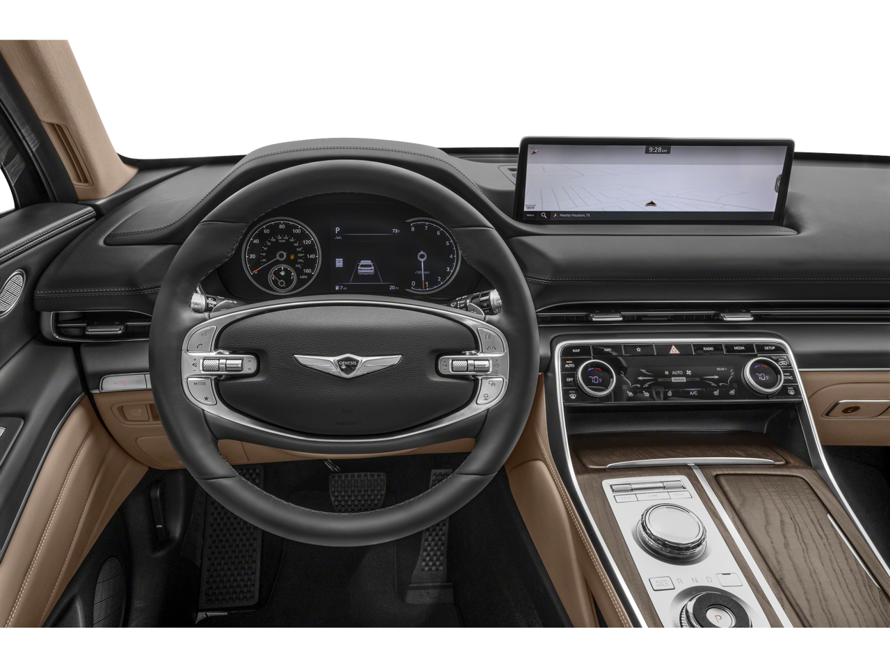 Option Group 01, 12 Speakers, 4-Wheel Disc Brakes, 4.363 Axle Ratio, ABS brakes, Air Conditioning, Alloy wheels, AM/FM radio: SiriusXM, Android Auto & Apple CarPlay, Anti-whiplash front head restraints, Auto High-beam Headlights, Auto tilt-away steering wheel, Auto-dimming door mirrors, Auto-dimming Rear-View mirror, Auto-leveling suspension, Automatic temperature control, Brake assist, Bumpers: body-color, Compass, Delay-off headlights, Driver door bin, Driver vanity mirror, Dual front impact airbags, Dual front side impact airbags, Electronic Stability Control, Emergency communication system: Genesis Connected Services, Exterior Parking Camera Rear, Four wheel independent suspension, Front anti-roll bar, Front Bucket Seats, Front Center Armrest, Front dual zone A/C, Front reading lights, Fully automatic headlights, Garage door transmitter: HomeLink, Genuine wood console insert, Genuine wood dashboard insert, Genuine wood door panel insert, Heated door mirrors, Heated Front Bucket Seats, Heated front seats, Heated steering wheel, Illuminated entry, Knee airbag, Leather steering wheel, Leatherette Seating Surfaces, Low tire pressure warning, Memory seat, Navigation System, Occupant sensing airbag, Outside temperature display, Overhead airbag, Overhead console, Panic alarm, Passenger door bin, Passenger vanity mirror, Power door mirrors, Power driver seat, Power Liftgate, Power passenger seat, Power steering, Power windows, Radio data system, Radio:14.5 Navigation System w/AM/FM/HD Radio, Rain sensing wipers, Rear air conditioning, Rear anti-roll bar, Rear reading lights, Rear seat center armrest, Rear side impact airbag, Rear window defroster, Rear window wiper, Remote keyless entry, Security system, Speed control, Speed-sensing steering, Speed-Sensitive Wipers, Split folding rear seat, Spoiler, Steering wheel memory, Steering wheel mounted audio controls, Tachometer, Telescoping steering wheel, Tilt steering wheel, Traction control, Trip computer, Turn signal indicator mirrors, Variably intermittent wipers, and Wheels: 19 x 8.5J Medium Metallic Gray Alloy.