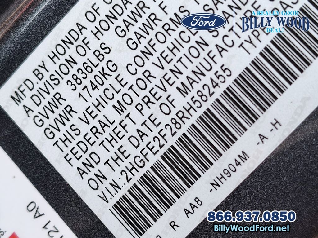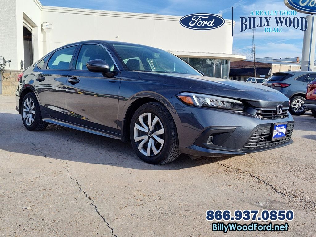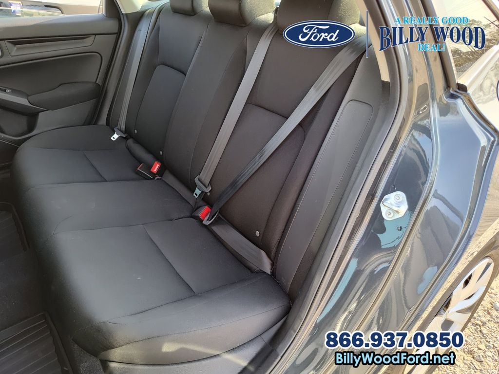 Billy Wood Ford is proud to offer this outstanding-looking 2024 Honda Civic in Gray This vehicle has passed our comprehensive 160 point inspection with flying colors and comes with the following features; Cloth, 16 Wheels w/Full Covers, 4 Speakers, 4-Wheel Disc Brakes, ABS brakes, Adaptive Cruise Control: Adaptive Cruise Control (ACC) with Low-Speed Follow, Air Conditioning, AM/FM radio, Apple CarPlay/Android Auto, Auto High-beam Headlights, Automatic temperature control, Brake assist, Bumpers: body-color, Cloth Seating Surfaces, Delay-off headlights, Driver door bin, Driver vanity mirror, Dual front impact airbags, Dual front side impact airbags, Electronic Stability Control, Emergency communication system: HondaLink, Exterior Parking Camera Rear, Four wheel independent suspension, Front anti-roll bar, Front Bucket Seats, Front Center Armrest, Front reading lights, Fully automatic headlights, Illuminated entry, Knee airbag, Low tire pressure warning, Occupant sensing airbag, Outside temperature display, Overhead airbag, Panic alarm, Passenger door bin, Passenger vanity mirror, Power door mirrors, Power steering, Power windows, Radio data system, Radio: 160-Watt Audio System, Rear anti-roll bar, Rear side impact airbag, Rear window defroster, Remote keyless entry, Security system, Speed control, Speed-sensing steering, Steering wheel mounted audio controls, Tachometer, Telescoping steering wheel, Tilt steering wheel, Traction control, and Trip computer. CVT 2.0L I4 DOHC 16V i-VTEC