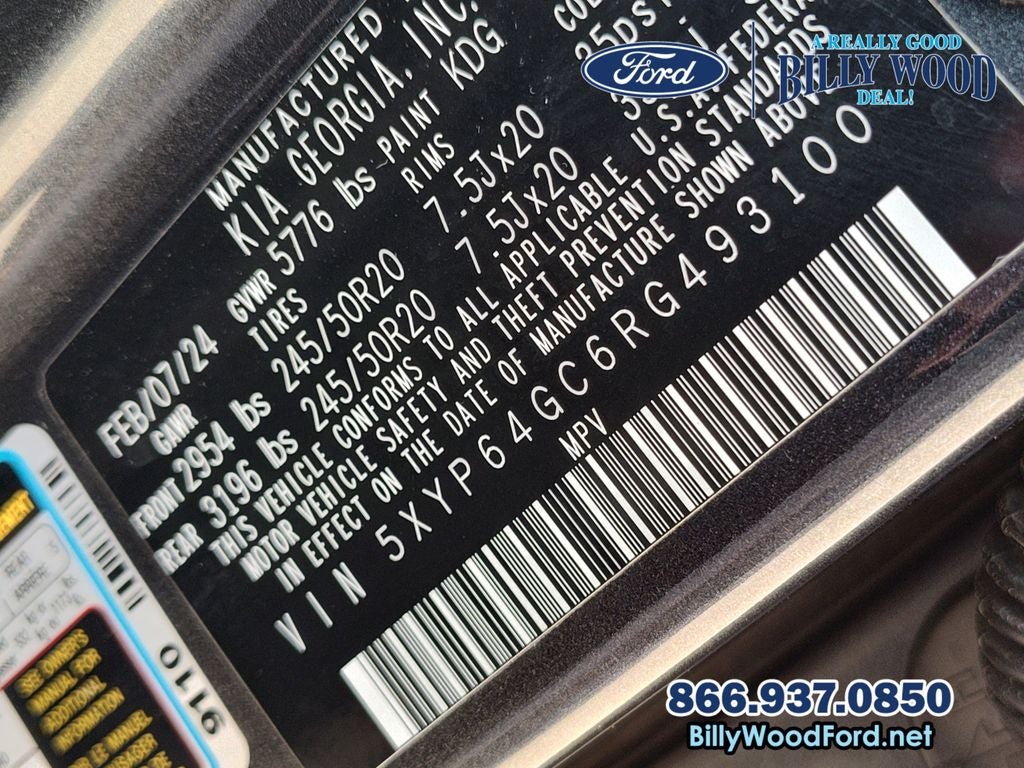 Billy Wood Ford is proud to offer this great 2024 Kia Telluride in Gravity Gray This vehicle has passed our comprehensive 160 point inspection with flying colors and comes with the following features; 3.510 Axle Ratio, 3rd row seats: split-bench, 4-Wheel Disc Brakes, 6 Speakers, ABS brakes, Air Conditioning, Alloy wheels, AM/FM radio: SiriusXM, Apple CarPlay & Android Auto, Auto High-beam Headlights, Automatic temperature control, Brake assist, Bumpers: body-color, Carpet Floor Mats, Delay-off headlights, Driver door bin, Driver vanity mirror, Dual front impact airbags, Dual front side impact airbags, Electronic Stability Control, Emergency communication system: 911 Connect, Exterior Parking Camera Rear, Four wheel independent suspension, Front anti-roll bar, Front Bucket Seats, Front Center Armrest, Front dual zone A/C, Front reading lights, Fully automatic headlights, Heated door mirrors, Heated Front Bucket Seats, Heated front seats, Illuminated entry, Knee airbag, Leather Shift Knob, Leather steering wheel, Low tire pressure warning, Navigation System, Occupant sensing airbag, Outside temperature display, Overhead airbag, Overhead console, Panic alarm, Passenger door bin, Passenger vanity mirror, Power door mirrors, Power driver seat, Power steering, Power windows, Radio data system, Radio: AM/FM Display Audio System, Rear air conditioning, Rear anti-roll bar, Rear audio controls, Rear reading lights, Rear side impact airbag, Rear window defroster, Rear window wiper, Reclining 3rd row seat, Remote keyless entry, Roof rack: rails only, Security system, Smart Key w/ Push Button and Remote Start, Speed control, Speed-sensing steering, Split folding rear seat, Spoiler, Steering wheel mounted audio controls, SynTex Synthetic Leather Seat Trim, Tachometer, Telescoping steering wheel, Tilt steering wheel, Traction control, Trip computer, Turn signal indicator mirrors, Variably intermittent wipers, and Wheels: 20 x 7.5 Black Finish. 8-Speed Automatic 3.8L V6 DOHC