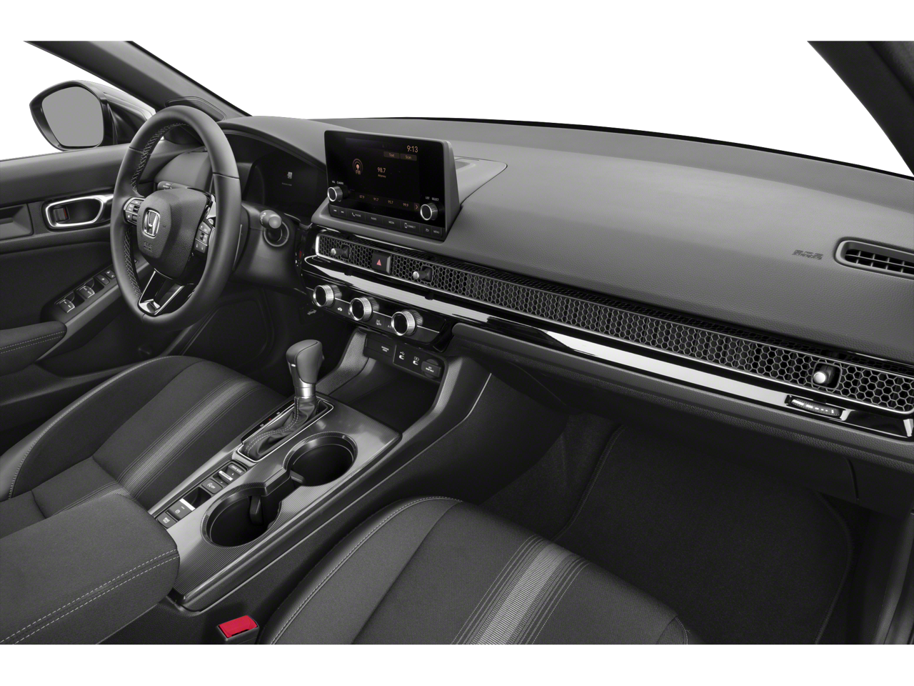 4-Wheel Disc Brakes, 8 Speakers, ABS brakes, Adaptive Cruise Control: Adaptive Cruise Control (ACC) with Low-Speed Follow, Air Conditioning, Alloy wheels, AM/FM radio, Apple CarPlay/Android Auto, Auto High-beam Headlights, Automatic temperature control, Blind Spot Information (BSI) System warning, Brake assist, Bumpers: body-color, Cloth/Leatherette Seating Surfaces, Delay-off headlights, Driver door bin, Driver vanity mirror, Dual front impact airbags, Dual front side impact airbags, Electronic Stability Control, Emergency communication system: HondaLink, Exterior Parking Camera Rear, Four wheel independent suspension, Front anti-roll bar, Front Bucket Seats, Front Center Armrest, Front reading lights, Fully automatic headlights, Heated door mirrors, Illuminated entry, Knee airbag, Leather Shift Knob, Leather steering wheel, Low tire pressure warning, Occupant sensing airbag, Outside temperature display, Overhead airbag, Panic alarm, Passenger door bin, Passenger vanity mirror, Power door mirrors, Power steering, Power windows, Radio data system, Radio: 180-Watt Audio System, Rear anti-roll bar, Rear seat center armrest, Rear side impact airbag, Rear window defroster, Remote keyless entry, Security system, Speed control, Speed-sensing steering, Split folding rear seat, Steering wheel mounted audio controls, Tachometer, Telescoping steering wheel, Tilt steering wheel, Traction control, Trip computer, and Wheels: 18 Gloss Black Alloy.