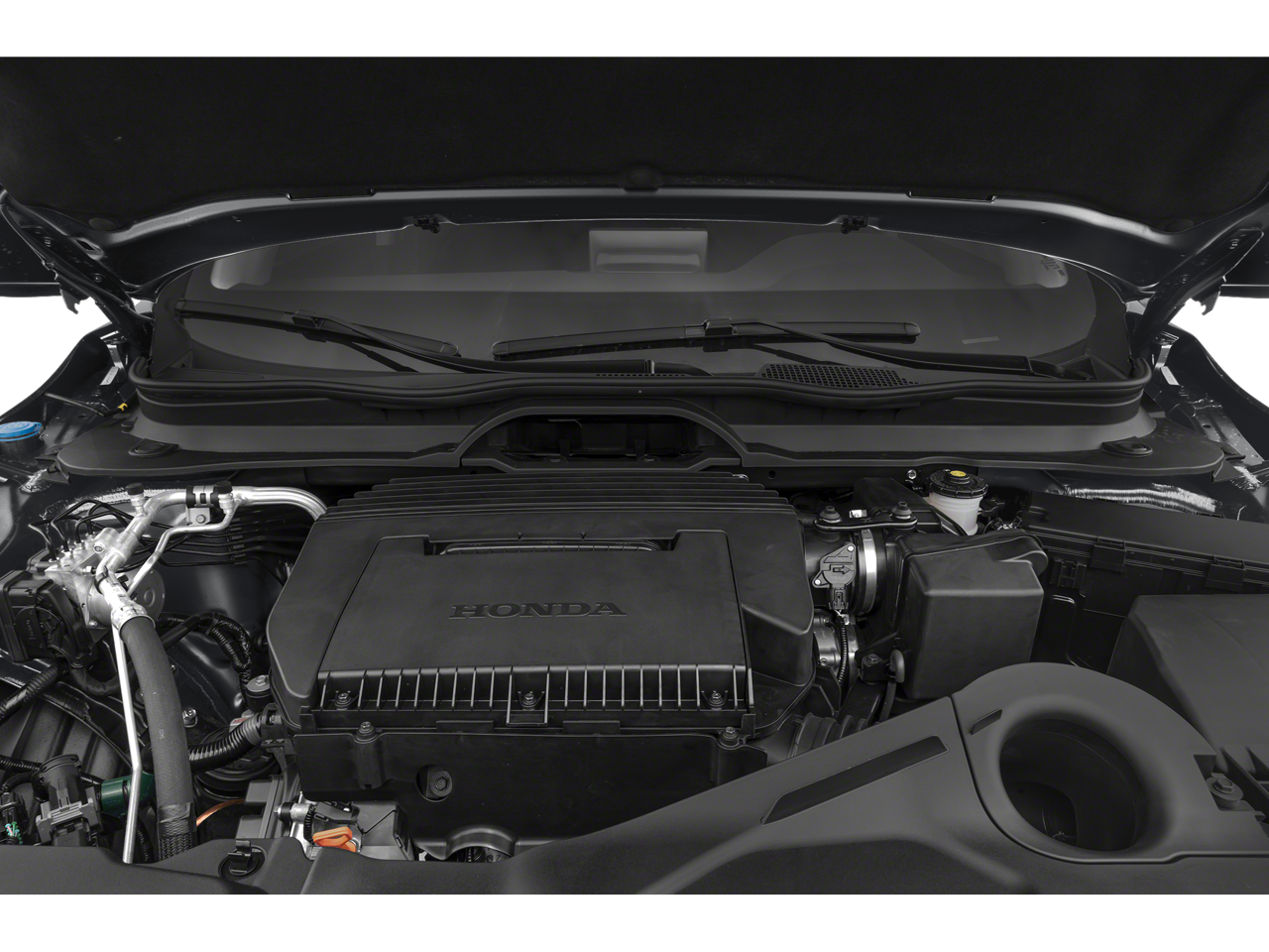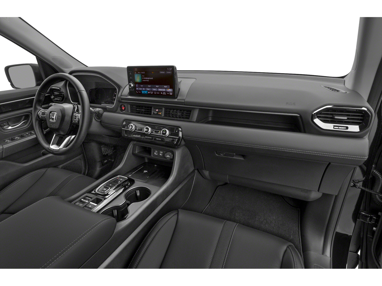 3rd row seats: split-bench, 4-Wheel Disc Brakes, 4.167 Axle Ratio, 9 Speakers, ABS brakes, Adaptive Cruise Control: Adaptive Cruise Control (ACC) with Low-Speed Follow, Air Conditioning, Alloy wheels, AM/FM radio: SiriusXM, Apple CarPlay/Android Auto, Auto High-beam Headlights, Auto-dimming Rear-View mirror, Automatic temperature control, Blind Spot Information (BSI) System warning, Brake assist, Bumpers: body-color, Delay-off headlights, Driver door bin, Driver vanity mirror, Dual front impact airbags, Dual front side impact airbags, Electronic Stability Control, Emergency communication system: HondaLink Assist, Exterior Parking Camera Rear, Four wheel independent suspension, Front anti-roll bar, Front Bucket Seats, Front Center Armrest, Front dual zone A/C, Front fog lights, Front reading lights, Fully automatic headlights, Garage door transmitter: HomeLink, Heated door mirrors, Heated Front Bucket Seats, Heated front seats, Illuminated entry, Knee airbag, Lane departure: Lane Keeping Assist System (LKAS) active, Leather Seat Trim, Low tire pressure warning, Memory seat, Occupant sensing airbag, Outside temperature display, Overhead airbag, Overhead console, Panic alarm, Passenger door bin, Passenger vanity mirror, Power door mirrors, Power driver seat, Power Liftgate, Power passenger seat, Power steering, Power windows, Radio data system, Radio: 245-Watt Audio System, Rear air conditioning, Rear anti-roll bar, Rear reading lights, Rear seat center armrest, Rear window defroster, Rear window wiper, Reclining 3rd row seat, Remote keyless entry, Security system, SiriusXM, Speed control, Speed-sensing steering, Speed-Sensitive Wipers, Split folding rear seat, Spoiler, Steering wheel mounted audio controls, Tachometer, Telescoping steering wheel, Tilt steering wheel, Traction control, Trip computer, Turn signal indicator mirrors, Variably intermittent wipers, and Wheels: 18 Pewter Gray Machined Face.