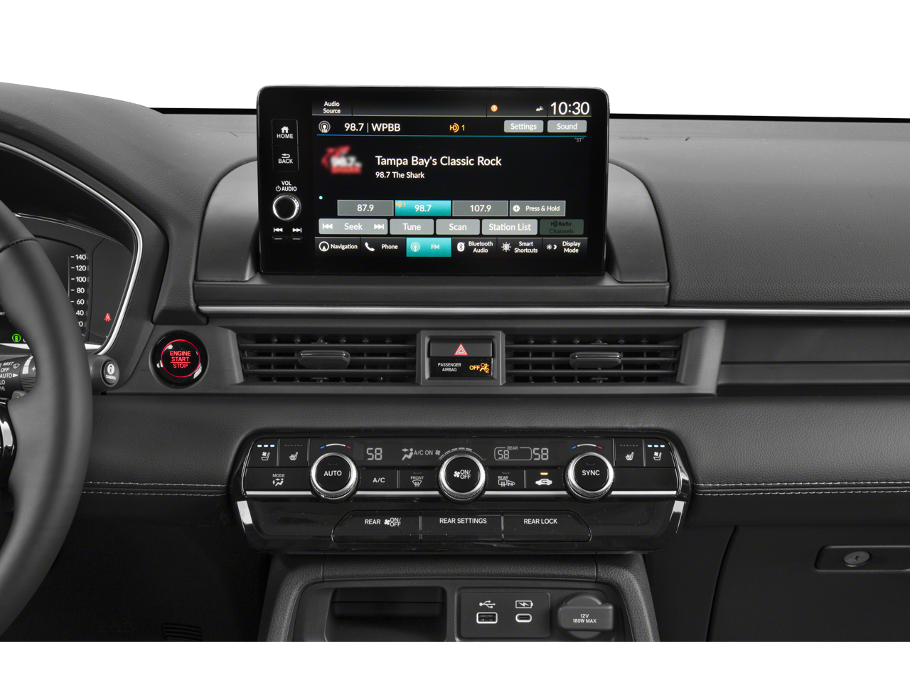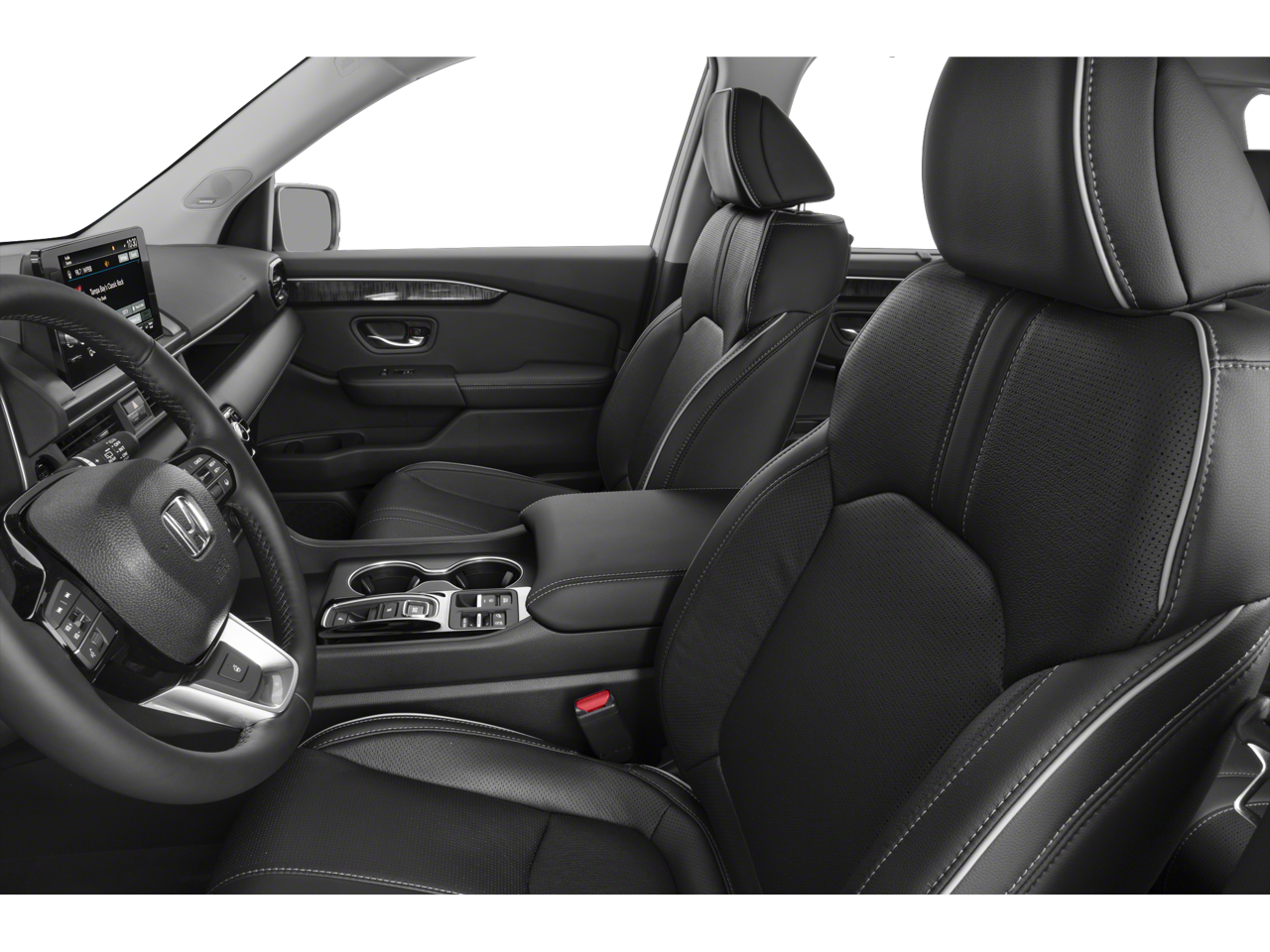 12 Speakers, 3rd row seats: split-bench, 4-Wheel Disc Brakes, 4.167 Axle Ratio, ABS brakes, Adaptive Cruise Control: Adaptive Cruise Control (ACC) with Low-Speed Follow, Air Conditioning, Alloy wheels, AM/FM radio: SiriusXM, Apple CarPlay/Android Auto, Auto High-beam Headlights, Auto-dimming door mirrors, Auto-dimming Rear-View mirror, Automatic temperature control, Blind Spot Information (BSI) System warning, Bose Premium Sound System, Brake assist, Bumpers: body-color, Compass, Delay-off headlights, Driver door bin, Driver vanity mirror, Dual front impact airbags, Dual front side impact airbags, Electronic Stability Control, Emergency communication system: HondaLink, Exterior Parking Camera Rear, Four wheel independent suspension, Front anti-roll bar, Front Bucket Seats, Front Center Armrest, Front dual zone A/C, Front fog lights, Front reading lights, Fully automatic headlights, Garage door transmitter: HomeLink, Heads-Up Display, Heated and Ventilated Front Bucket Seats, Heated door mirrors, Heated front seats, Heated rear seats, Heated steering wheel, Honda Satellite-Linked Navigation System, HondaLink Subscription Services, Illuminated entry, Knee airbag, Lane departure: Lane Keeping Assist System (LKAS) active, Low tire pressure warning, Memory seat, Navigation system: Honda Satellite-Linked Navigation System, Occupant sensing airbag, Outside temperature display, Overhead airbag, Overhead console, Panic alarm, Passenger door bin, Passenger vanity mirror, Perforated Leather Seat Trim, Power door mirrors, Power driver seat, Power Liftgate, Power moonroof, Power passenger seat, Power steering, Power windows, Radio data system, Rain sensing wipers, Rear air conditioning, Rear anti-roll bar, Rear reading lights, Rear seat center armrest, Rear window defroster, Rear window wiper, Reclining 3rd row seat, Remote keyless entry, Security system, SiriusXM, Speed control, Speed-sensing steering, Speed-Sensitive Wipers, Split folding rear seat, Spoiler, Steering wheel mounted audio controls, Tachometer, Telescoping steering wheel, Tilt steering wheel, Traction control, Trip computer, Turn signal indicator mirrors, Variably intermittent wipers, Ventilated front seats, and Wheels: 20 Shark Gray Machine Face with Black Lug Nuts.