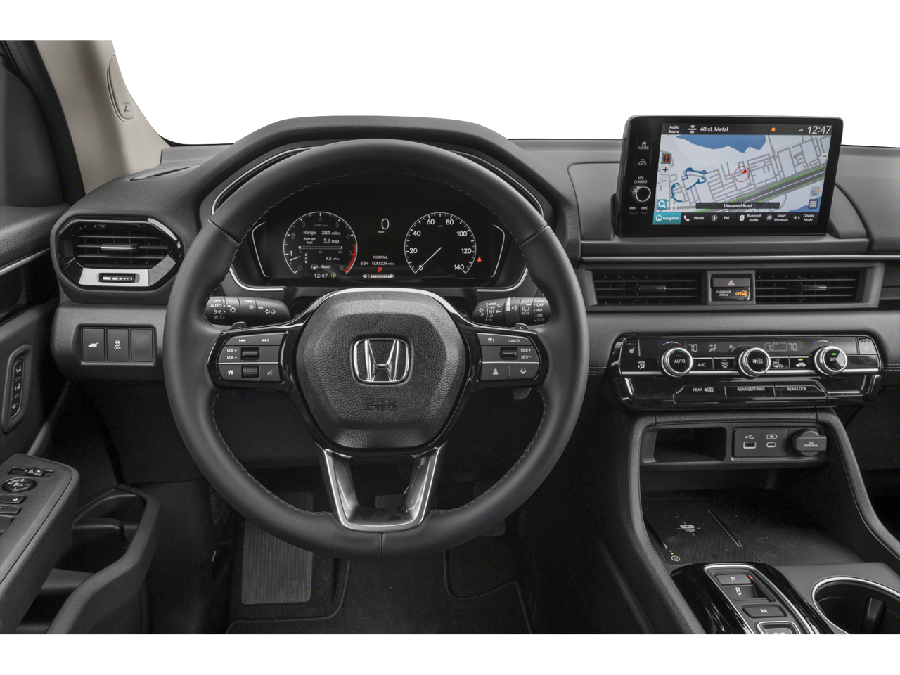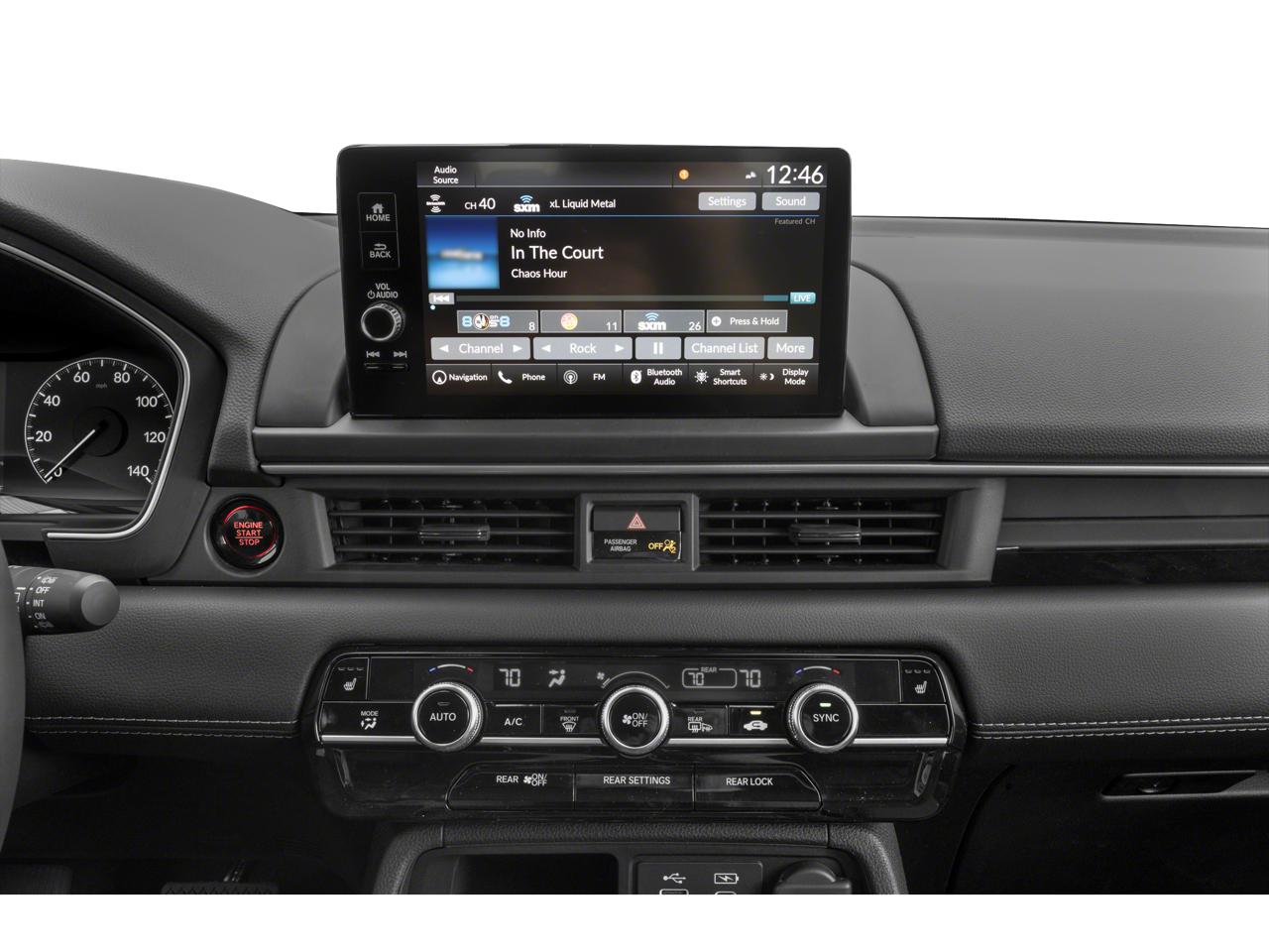 12 Speakers, 3rd row seats: split-bench, 4-Wheel Disc Brakes, 4.167 Axle Ratio, ABS brakes, Adaptive Cruise Control: Adaptive Cruise Control (ACC) with Low-Speed Follow, Air Conditioning, Alloy wheels, AM/FM radio: SiriusXM, Apple CarPlay/Android Auto, Auto High-beam Headlights, Auto-dimming Rear-View mirror, Automatic temperature control, Blind Spot Information (BSI) System warning, Bose Premium Sound System, Brake assist, Bumpers: body-color, Compass, Delay-off headlights, Driver door bin, Driver vanity mirror, Dual front impact airbags, Dual front side impact airbags, Electronic Stability Control, Emergency communication system: HondaLink, Exterior Parking Camera Rear, Four wheel independent suspension, Front anti-roll bar, Front Bucket Seats, Front Center Armrest, Front dual zone A/C, Front fog lights, Front reading lights, Fully automatic headlights, Garage door transmitter: HomeLink, Heated door mirrors, Heated Front Bucket Seats, Heated front seats, Honda Satellite-Linked Navigation System, HondaLink Subscription Services, Illuminated entry, Knee airbag, Lane departure: Lane Keeping Assist System (LKAS) active, Leather Seat Trim, Low tire pressure warning, Memory seat, Navigation system: Honda Satellite-Linked Navigation System, Occupant sensing airbag, Outside temperature display, Overhead airbag, Overhead console, Panic alarm, Passenger door bin, Passenger vanity mirror, Power door mirrors, Power driver seat, Power Liftgate, Power moonroof, Power passenger seat, Power steering, Power windows, Radio data system, Rear air conditioning, Rear anti-roll bar, Rear reading lights, Rear seat center armrest, Rear window defroster, Rear window wiper, Reclining 3rd row seat, Remote keyless entry, Security system, SiriusXM, Speed control, Speed-sensing steering, Speed-Sensitive Wipers, Split folding rear seat, Spoiler, Steering wheel mounted audio controls, Tachometer, Telescoping steering wheel, Tilt steering wheel, Traction control, Trip computer, Turn signal indicator mirrors, Variably intermittent wipers, and Wheels: 20 Shark Gray Machine Face with Black Lug Nuts.