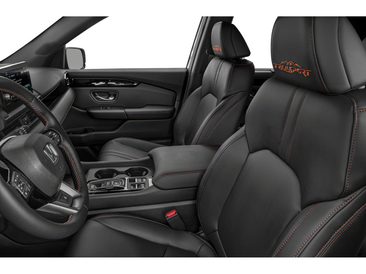 The Pilot TrailSport's rugged yet refined exterior features a bold, distinctive design that commands attention. The Shark Gray alloy wheels with black lug nuts, combined with the durable synthetic leather seat trim, create a premium and adventurous aesthetic. Equipped with a power moonroof, power-folding side mirrors, and a rear window wiper, this SUV offers both style and convenience.